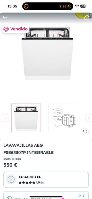 Lavavajillas de gran capacidad XXL. Está muy cuidado por fuera, pero solo funciona el programa ECO, precionegociable