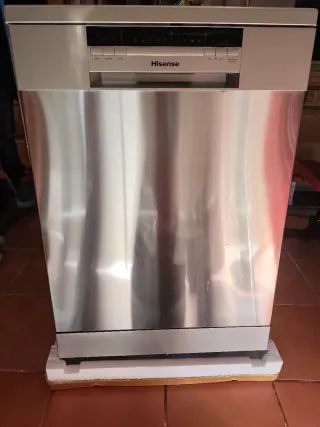 Lavavajillas Hisense con acabado en acero inoxidable. - Diseño moderno y elegante. - Panel de control integrado. - Bandejas bastante oxidadas