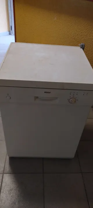 Lavavajillas BOSCH, modelo SM41D08EU/44. Funciona perfectamente, el único desperfecto es un descolorido que tiene en la parte superior, debido a un producto de limpieza (puede apreciarse en la primera fotografía). Dimensiones 845 X 600 X 600 mm Incluidos tubos de desagüe y abastecimiento, así como todos los cestos y bandejas. Se vende en la zona de Hortaleza, no sé hacen envíos, imprescindible recogida en el lugar de venta. Precio negociable.