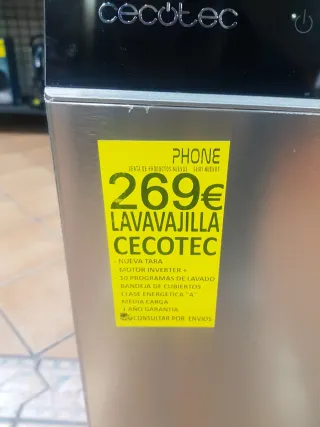 Lavavajillas Cecotec en perfecto nuevo de tara - MOTOR INVERTER - 10 PROGRAMAS DE LAVADO -BANDEJA DE CUBIERTOS - CLASE ENERGÉTICA "B" - MEDIA CARGA - 1 AÑO DE GARANTÍA > CONSULTAR POR ENVÍOS Tienda física flash electrod carruss /c/diagonal 33 elche alicante 606701196