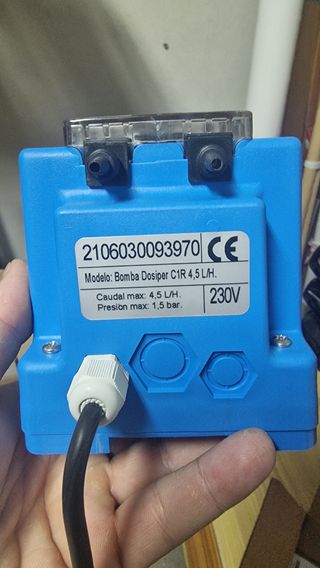 Bomba dosificadora de líquidos en color azul. - Incluye mangueras y cable de alimentación. - Modelo Dosper.
