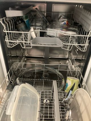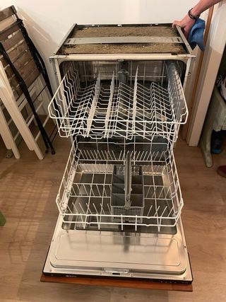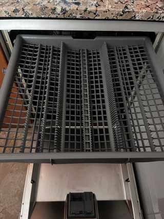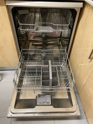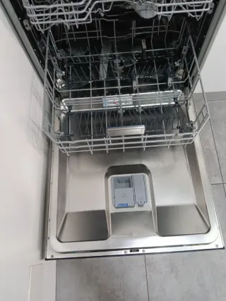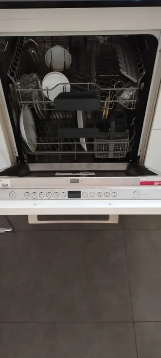 Lavavajillas integrado en buen estado. - Cestas ajustables para optimizar el espacio. - Compartimento para cubiertos. - Panel de control frontal.