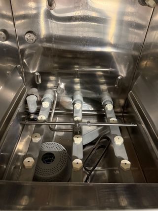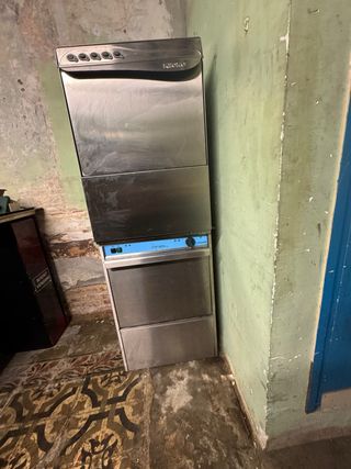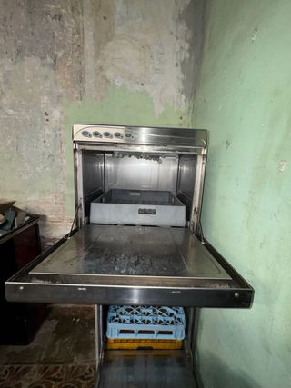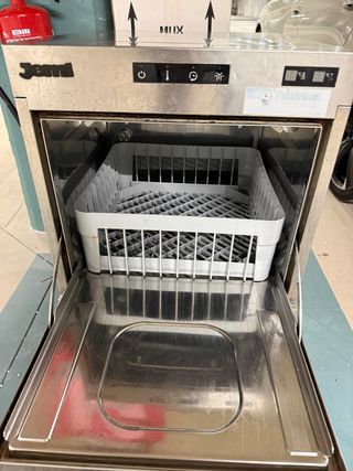 Lavavajillas industrial de la marca Jemi. Diseñado para un uso profesional y eficiente. - Construcción robusta en acero inoxidable. - Cesta extraíble para facilitar la carga y descarga. - Panel de control intuitivo con indicadores digitales. revisión recién hecha funciona a la perfección