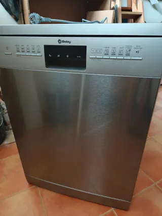 No calienta el agua, por lo demas funciona perfectamente. Cesta y rejillas en perfecto estado.Lavavajillas de la marca Balay con acabado en acero inoxidable. - Panel de control con pantalla digital. - Indicador de tiempo restante. - Botones para selección de programas y funciones. - Diseño moderno y elegante.