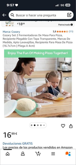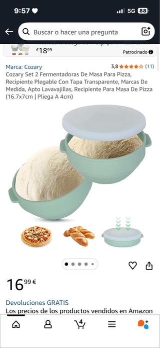 Set de dos recipientes fermentadores de masa para pizza de la marca Cozary. Son plegables y cuentan con tapa transparente. - Marcas de medida. - Aptos para lavavajillas. - Recipiente para masa de pizza. - Medidas: 16.7x7cm. - Plegado: 4cm. 🛋️¡SOLO UNA UNIDAD! Procedente de OUTLET. COMPLETAMENTE NUEVO. 🚛 POSIBILIDAD DE ENVÍO A TODA ESPAÑA A TRAVÉS DE WALLAPOP 📦 🏪 TAMBIÉN PUEDE VENIR A RECOGERLO A NUESTRO OUTLET HOY MISMO EN ALCANTARILLA (horarios en Google Maps) LA LIQUIDACIÓN DEL DESCANSO ✅ GARANTÍA EN TODOS NUESTROS ARTÍCULOS 📦📦 SI DESEAS UNIFICAR COMPRAS, CONTACTA CON NOSOTROS.