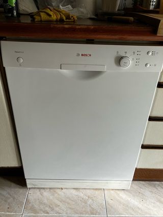 Lavavajillas de la marca Bosch con sistema AquaStop. - Color blanco. - Panel de control superior. Es antiguo, pero funciona muy bien, actualmente en uso. Tiene algunas marcas de uso (foto). Vendo por reforma de la cocina. Precio NO NEGOCIABLE. No hago envíos, se recoge en Móstoles