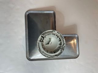 Filtro para lavavajillas Miele. Pieza de recambio. Recambios Originales Miele procedente despiece desmontaje de lavavajillas Miele G1023 SC compatible con muchos modelos - Filtro microfiltro fino 0597622 + 05987080 En buen estado. Presenta signos de uso en la bisagra de plástico pero no afecta a la apertura y cierre - Material: Plástico y metal. - Diseño circular con rejilla.