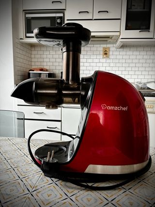 Licuadora de extracción lenta, prensado en frío, Amzchef en color rojo. - Diseño moderno y compacto. - Marca: Amzchef. - Tipo: Cold Press.