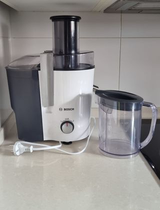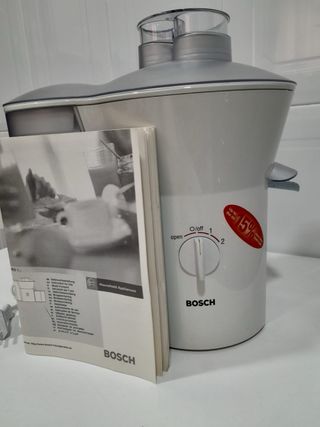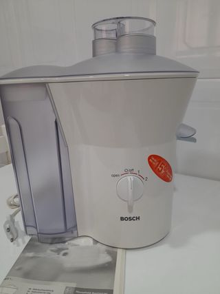 Licuadora de la marca Bosch, modelo VitaExtract. Ideal para preparar zumos frescos. Con regulador de pulpa. - Incluye todos los accesorios. - Manual de recetas Bosch.