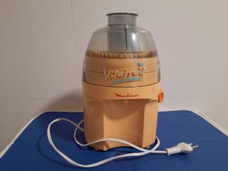 Licuadora Moulinex modelo 753. - Color beige y detalles en marrón. - Depósito transparente para los residuos y desperdicios de las frutas y hortalizas - El zumo licuado sale directamente, por un orificio en el que hay que colocar vaso - Utilizado un par de veces, impecable. Lo entrego en mano en zona metro Campamento, Carpetana, Aluche, Laguna...