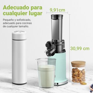 Nuevo!! Medidas 12 x 10 x 31 cm y el calibre del exprimidor es de 4,5 cm de ancho. Gira de 60 a 100 veces por minuto. Esto evita que los nutrientes se pierdan o se vean afectados por el jugo. Debido a que el exprimidor lento no produce calor excesivo. Fácil de llimpiar, desmontable. Incluye: 1 exprimidor de verduras y frutas y cualquier accesorio de instalación, 2 recipientes de zumo de 400 ml, 370 ml, 1 cepillo de limpieza. E5W