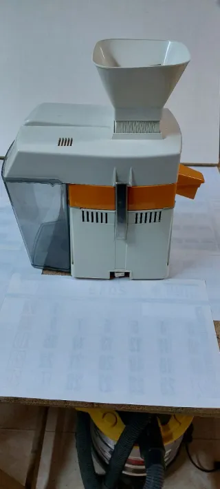 licuadora muy cómoda de utilizar y fácil de limpiar , no tiene mucho uso , funciona muy bien , solo tiene un poco manchado por los cítricos la tapa y el recipiente recolector de zumo , pero lo demás esta completamente nuevo...