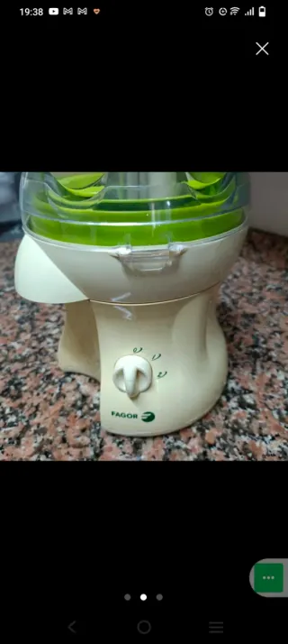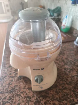 Me gustaría vender mi licuadora Fagor LC320. Es un exprimidor de color crema y transparente, en buen estado. - Modelo: Fagor LC320 - Incluye empujador (Pusher/Pousseur/Schieber)