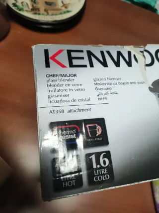 Licuadora de cristal Kenwood Chef/Major AT358. Thermoresist - Capacidad de 1.2 litros para líquidos calientes. - Capacidad de 1.6 litros para líquidos fríos. - Accesorio AT358.