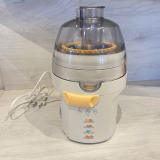 Licuadora Moulinex con un diseño clásico en colores blanco y naranja. - Cuerpo principal en color blanco. - Detalle frontal en color naranja. - Jarra lateral transparente para el zumo. - Embudo superior blanco. - Muy poco uso. - Funciona perfectamente.