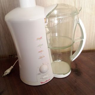 Licuadora Moulinex Vitafruit para frutas y verduras. Su diseño es compacto y funcional. Bastante usado y el plástico está un poco amarillo pero funciona perfectamente. - Color blanco y transparente. - Marca: Moulinex. - Modelo: Vitafruit.