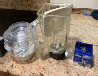 Set de accesorios para licuadora Oster. - Vaso de licuadora Oster. - Picadora Oster. - Recambio de cuchillas Oster.