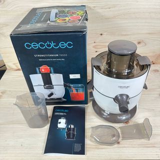 Cecotec Licuadora para Frutas y Verduras StrongTitanium 19000 (como nuevo, sin defectos). Potente motor de 650W y velocidad de 19000 rpm, con un recubrimiento de titanio en el disco que garantiza durabilidad. Su canal de entrada XL permite introducir frutas y verduras enteras sin necesidad de cortarlas. Esta licuadora ofrece una extracción óptima de jugos, manteniendo al máximo los nutrientes y el sabor de tus ingredientes. Su diseño ergonómico y fácil de limpiar la convierten en una herramienta indispensable en tu cocina. LPNWE353387637 cecotec, licuadora, frutas, verduras, strongtitanium, 19000, 650w, potencia, oferta, nuevo.