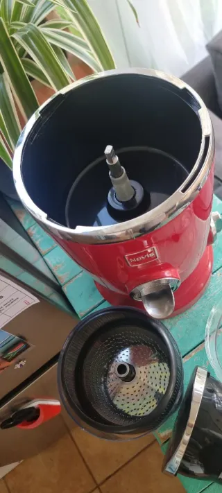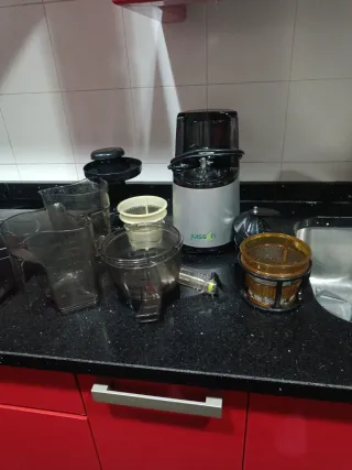 Licuadora H.Koenig GSX12 en acero inoxidable, ideal para zumos naturales, frutas y verduras. Sistema de prensado en frío que extrae más jugo y conserva mejor vitaminas y sabor. Motor de 400W potente y silencioso. Fácil de desmontar y limpiar, con piezas aptas para lavavajillas. Diseño compacto y elegante. Está en muy buen estado, poco uso y funcionando perfectamente. Perfecta para empezar a hacer zumos y batidos en casa sin complicaciones.
