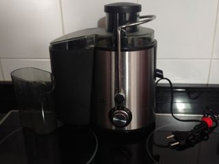 Marca: Taurus 500 W Licuadora centrífuga de 2 velocidades Cuerpo en acero inoxidable Boca de entrada 65 mm Capacidad zumo 0,35L (falta la tapa de este recipiente, pero no es necesaria para el correcto funcionamiento) Capacidad pulpa 1,2L Filtro extraíble de acero inoxidable, apto para lavavajillas Tamaño compacto Poco uso