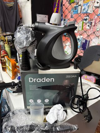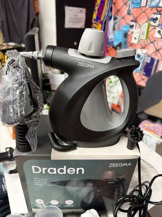 Limpiador a vapor portátil marca ZEEGMA, modelo Draden. Ideal para diversas tareas de limpieza. - Diseño ergonómico y compacto. - Incluye accesorios para diferentes usos. - Fácil de almacenar y transportar. nueva exposición precio no negociable