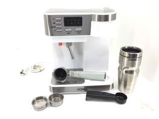 Cafetera Cecotec Power Espresso 20 para piezas. Ideal para quien necesite repuestos. - Diseño moderno en acero inoxidable y negro. - Panel de control con indicadores luminosos. - Incluye portafiltros y dos filtros.