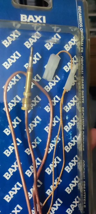 Termopar de repuesto para calderas Roca. Pieza original. ROCA R-20/20 ATMOSFÉRICA DE LLAMA PILOTO - Material: Latón y cobre. - Conectores blancos. Termopar nuevo en su embalaje original Sin abrir.
