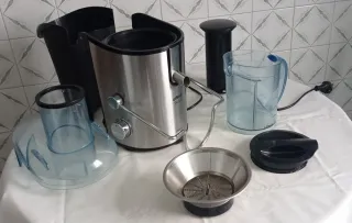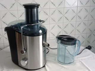Exprimidor eléctrico Taurus de acero inoxidable. Ideal para preparar zumos frescos. - Diseño moderno y compacto. - Cuerpo de acero inoxidable. - Fácil de limpiar.