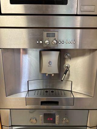 Cafetera integrable de la marca Balay, con un diseño moderno en acero,15bares de presion y gran deposito de agua y café. Mantenimiento al dia con productos originales y verificado por sat oficial. Espumador de leche, agua caliente y apta para cafe molido y en grano con regulacion de molienda. Incluye manuales originales y todos los accesorios para encastrar en mueble. - Panel de control digital. - Dispensador de café. - Bandeja recogegotas. - Jarra de acero inoxidable de regalo