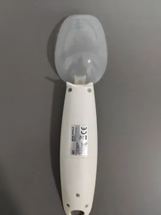 Báscula digital de cuchara, ideal para pesar ingredientes con precisión. - Pantalla digital clara. - Botones TARE y HOLD. - Marca SOEHNLE.