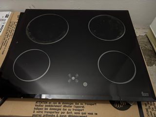 Placa vitrocerámica de la marca Teka con cuatro zonas de cocción. - Diseño moderno en cristal negro. - Controles táctiles. - Indicadores de calor residual.