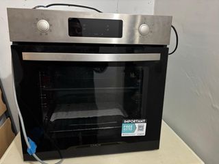 Horno de cocina de la marca Candy. Diseño moderno en acero inoxidable y cristal negro. - Panel de control con mandos giratorios y pantalla digital. - Puerta con doble cristal. - Tirador metálico. - Incluye etiqueta IMPORTANT FREE EXTRA GUARANTEE.