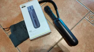 Aspiradora portátil Baseus A2 para coche. Incluye bolsa de almacenamiento y accesorio cepillo. - Diseño compacto y ergonómico. - Color negro. - Modelo A2.