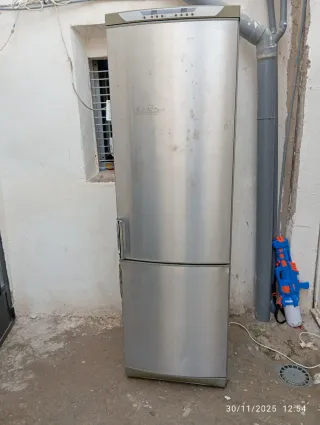 Nevera de acero inoxidable. Funciona perfectamente - Diseño moderno y elegante. - Acabado brillante. - Material resistente. Lo que se ve por fuera son cicatrices de unas pegatinas que llevaba