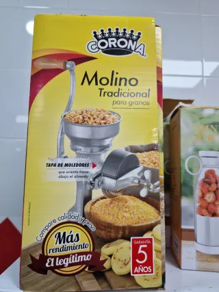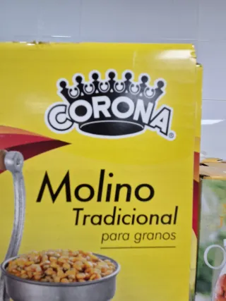 Molino tradicional marca Corona para granos. Ideal para moler maíz y otros cereales. - Tapa de moledores que orienta el alimento hacia abajo. - Diseño clásico y robusto. - Garantía de 5 años.