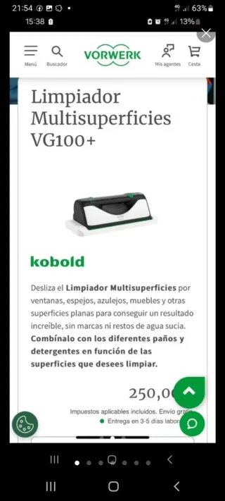Limpiador eléctrico Kobold VG100 Para Cristales, Espejos... Múltiples superficies Lisas. como Nuevo Ideal para una limpieza eficiente. En tienda oficial on las. su precio es de 250 € Más 55 € el brazo Extensible. total 305 € - Diseño elegante en blanco y negro con detalles verdes. El Original de Vorwerk Incluido - Base de carga blanca. - Cable de Carga - Bandeja - Balleta, Gamuza - Accesorio Mango, Brazo Telescópico Extensible a Estrenar para sitios altos como por ejemplo los Azulejos, Ventanales ... etc..