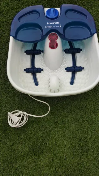 Masajeador de pies Taurus Bahia Relax en color blanco y azul. - Dispone de rodillos para masaje. - Incluye accesorio para burbujas. - Cable de alimentación.
