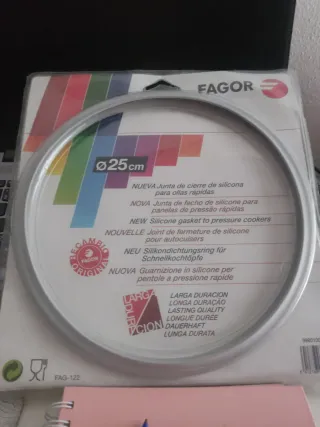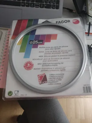 Junta de silicona de repuesto para ollas a presión Fagor. - Diámetro: 25 cm. - Material: Silicona. - Modelo: FAG-122. - Fabricación: Recambio original Fagor.