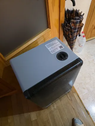 Calefactor eléctrico de la marca OK. Compacto y fácil de usar. - Dos niveles de potencia. - Termostato regulable. - Indicador luminoso de encendido. Whasapear al 643 580 663