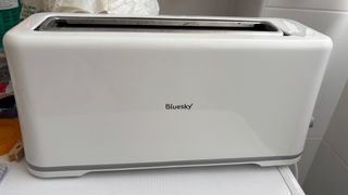 Tostadora de color blanco con diseño moderno. - Marca: Bluesky - Color: Blanco - Borde inferior gris