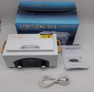 Sin estrenar. Caja esterilizadora de alta temperatura. Recomendado para desinfectar y esterilizar el instrumental de una esteticién o de rama sanitaria (médico, podólogo, enfermero, dentista...). El esterilizador de aire caliente está diseñado para esterilizar instrumentos de acero inoxidable como alicates, pinzas, tijeras, empujacutículas, etc. El procedimiento se basa en la aplicación de altas temperaturas, lo que permite eliminar al 100% los posibles agentes patógenos del instrumental.