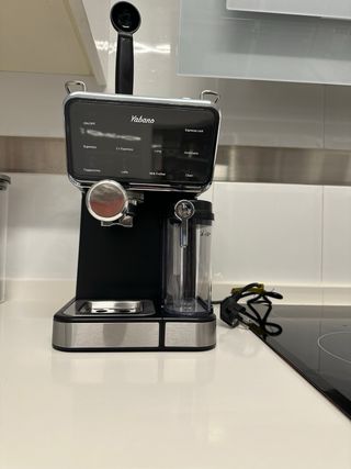 Cafetera Yabano en color negro, ideal para preparar tus cafés favoritos. - Diseño moderno y compacto. - Panel de control intuitivo con varias opciones de preparación. - Incluye vaporizador para leche.