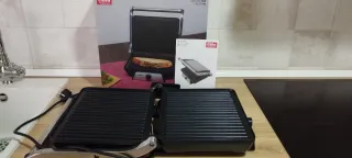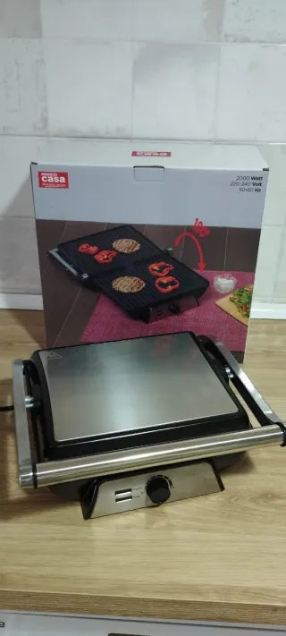 Parrilla eléctrica marca Espaço Casa, totalmente nueva, en su caja, acero inoxidable. Dos posiciones de cocinado, plancha o superior e inferior. - Potencia de 2000 w, acero inoxidable. Las medidas del grill están en una de las fotos. Las medidas que he puesto más abajo son las de la caja entera
