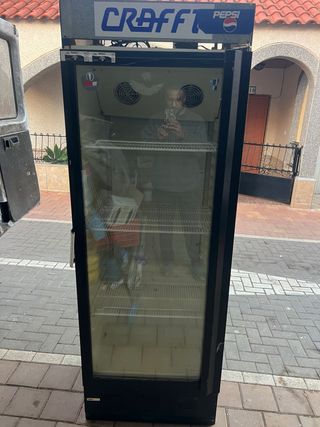 Frigorífico expositor de la marca CRFFT con licencia PEPSI. Ideal para negocios o para coleccionistas.NO FUNCIONA NOSE QUE LE PASA POR ESO SU PRECIO - Diseño vertical con puerta de cristal. - Iluminación interior. - Estantes ajustables.