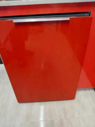 Lavavajillas integrable con acabado en color rojo brillante. - Diseño moderno y elegante. - Tirador metálico integrado. Se puede cambiar fácilmente el mueble rojo si necesitas el otro color