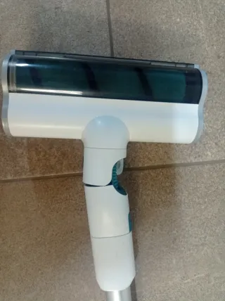 Mopa Vileda con pulverizador integrado para una limpieza eficiente. Como nuevo. - Mango ergonómico. - Depósito recargable. - Base giratoria para mayor maniobrabilidad.