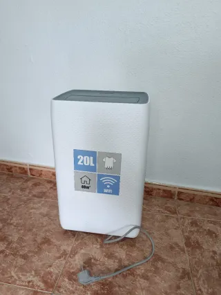 Deshumidificador Jocel con capacidad de 20 litros y conexión WiFi. - Ideal para estancias de hasta 40m². - Diseño moderno en color blanco. - Incluye cable de alimentación. - Prácticamente sin usar. - Comprado en media Mark en doscientos y pico euros. - También sirve para secar la ropa.