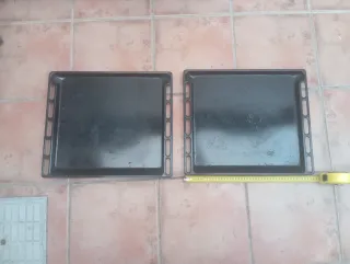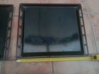 Bandeja de horno de color negro. Vale por mucho modelo de horno Balay, Bosch, Samsung, newpol, etc y mad marcas blancas 39cm x 45cm Hay 2 10€ ada uno Escucha oferta - Diseño rectangular. - Bordes elevados.