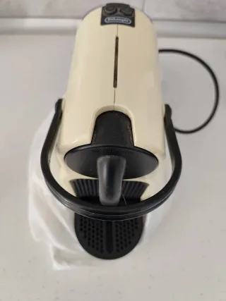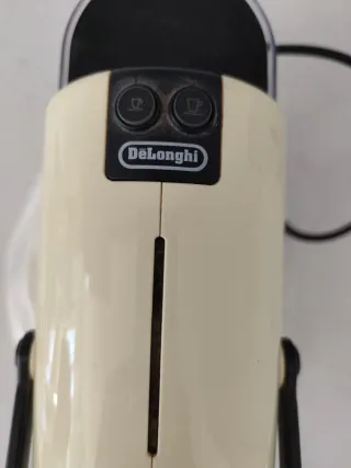 Cafetera de cápsulas de la marca DeLonghi. - Color crema. - Funciona bien pero pierde por el circuito, tiene pequeña averia