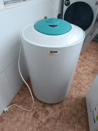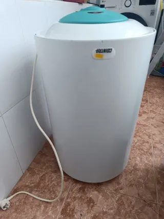 Termo eléctrico de la marca COINTRA con tapa superior de color azul. - Color blanco. - Cable de alimentación incluido. - Capacidad de 80L.